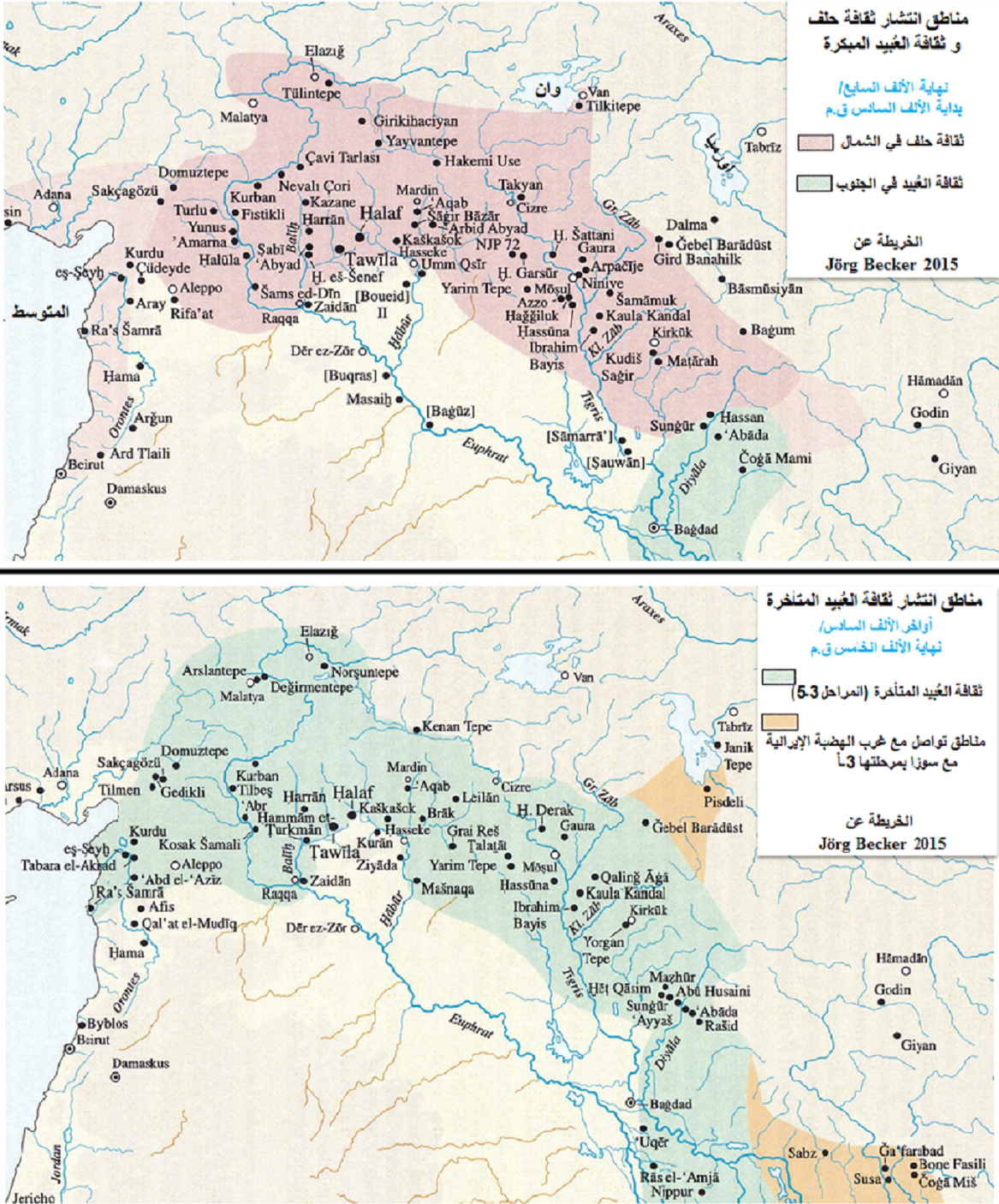 4.2 ـ في مرحلة لاحقة و بعد النيوليت، و خلال عصر الكالكوليت المتأخر (الألف الرابع ق.م)، تواجدت عناصر خارجية دخيلة عدة دخلت على زاگروس الأوسط و على طوروس الشرقي. اعتباراً من هذه الفترة يبدأ التراكم الثقافي بالتعقد و بالتشابك. فتتوضع طبقة ثقافية دخيلة فوق القديمة و تنصهران، ثم تأتي طبقة ثقافية جديدة لتضيف نفسها فيزيد من حجم التراكم و التعقيد.