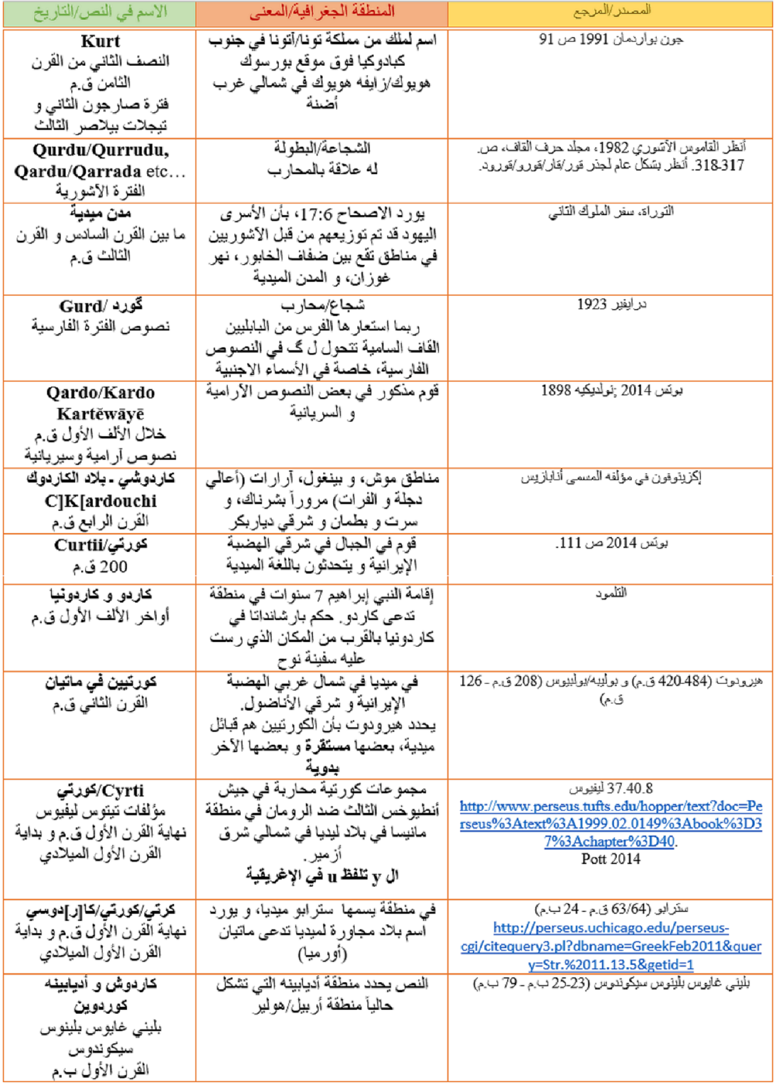 كلمات أساسية : نصوص و مصادر، كوردا، كاردا، قورتي، قاردا، كورتي، اومان ماندا، زاگروس الأوسط، طوروس الشرقي، هجرات هندوأوربية/آرية، مصير السكان المحليين.